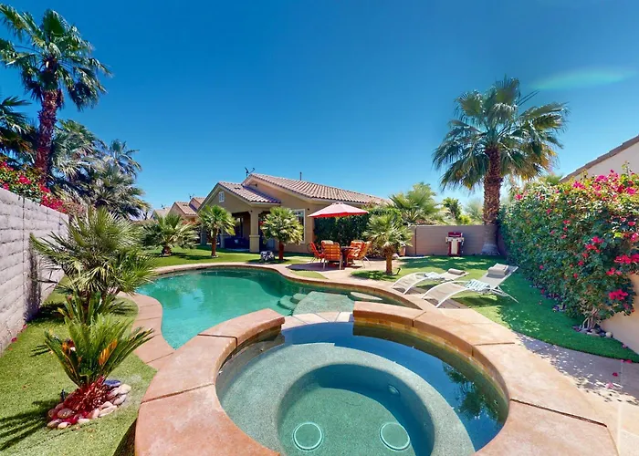 Een ingerichte kitchenette, samen met een eetgedeelte en een eethoek buiten, zijn beschikbaar om te dineren. Er zijn ook een koffie/theezetapparaat, een koelkast en een oven om uw eigen maaltijd te bereiden. De luchthaven Palm Springs bevindt zich op 29 minuten rijden van de 2-badkamer villa. Sportactiviteiten ter plaatse zijn onder andere wandelen, bowlen en fietsen.